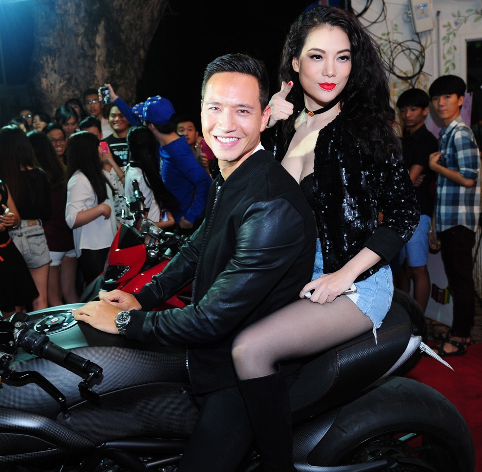 | Cặp người tình màn ảnh tạo dáng tình tứ trên xe phân khối lớn. Họ đến từ rất sớm để chụp hình, tập luyện tiết mục biểu diễn cùng các vũ công. Cặp đôi ăn mặc đồng bộ mỗi khi xuất hiện. Dù vướng nghi án hẹn hò nhưng cả hai chỉ úp mở rằng mối quan hệ đơn giản là tình bạn. Sắp tới, họ sẽ cùng nhau xuất hiện trong dự án phim điện ảnh mới I'm wanted do hai người sản xuất. |