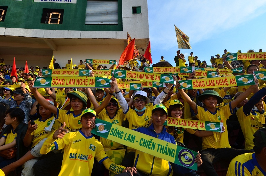 Không chỉ mang đến những “làn gió mát” trên khán đài, các fan nữ xứ Nghệ cổ vũ cuồng nhiệt không hề thua kém các fan nam.