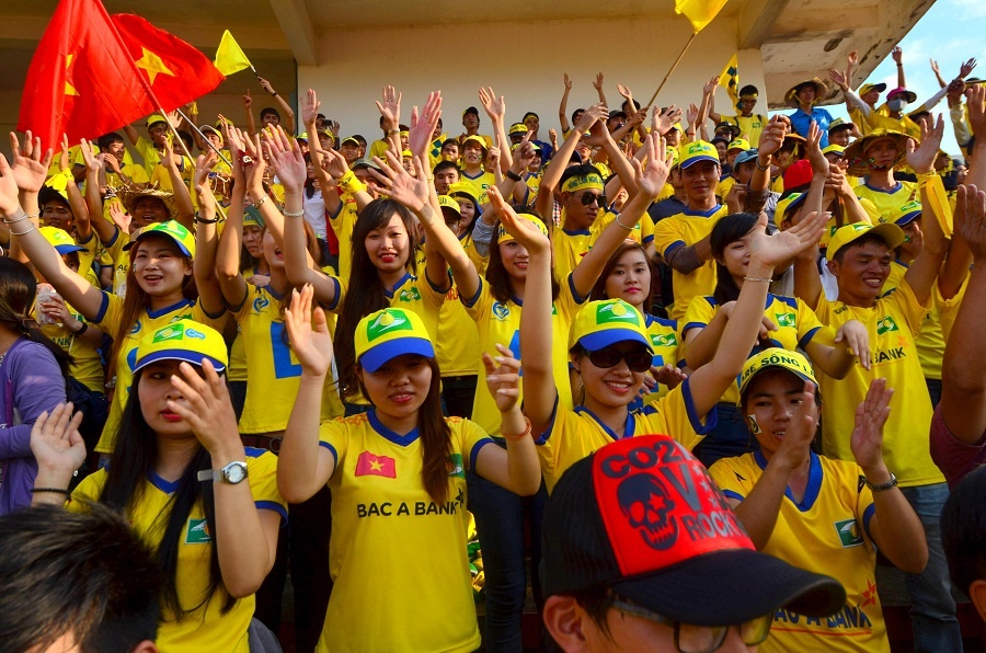Fan nữ đội nắng cổ vũ cuồng nhiệt cho SLNA