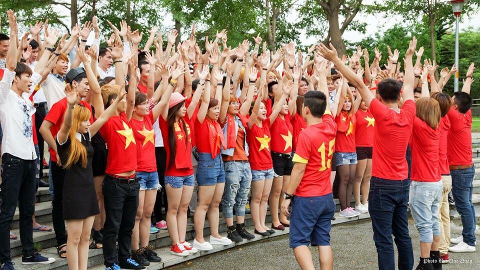 | Fan nữ Phạm Quỳnh cùng bạn ở Đài Loan nhiệt tình làm "hướng dẫn viên" cho các tuyển thủ. |