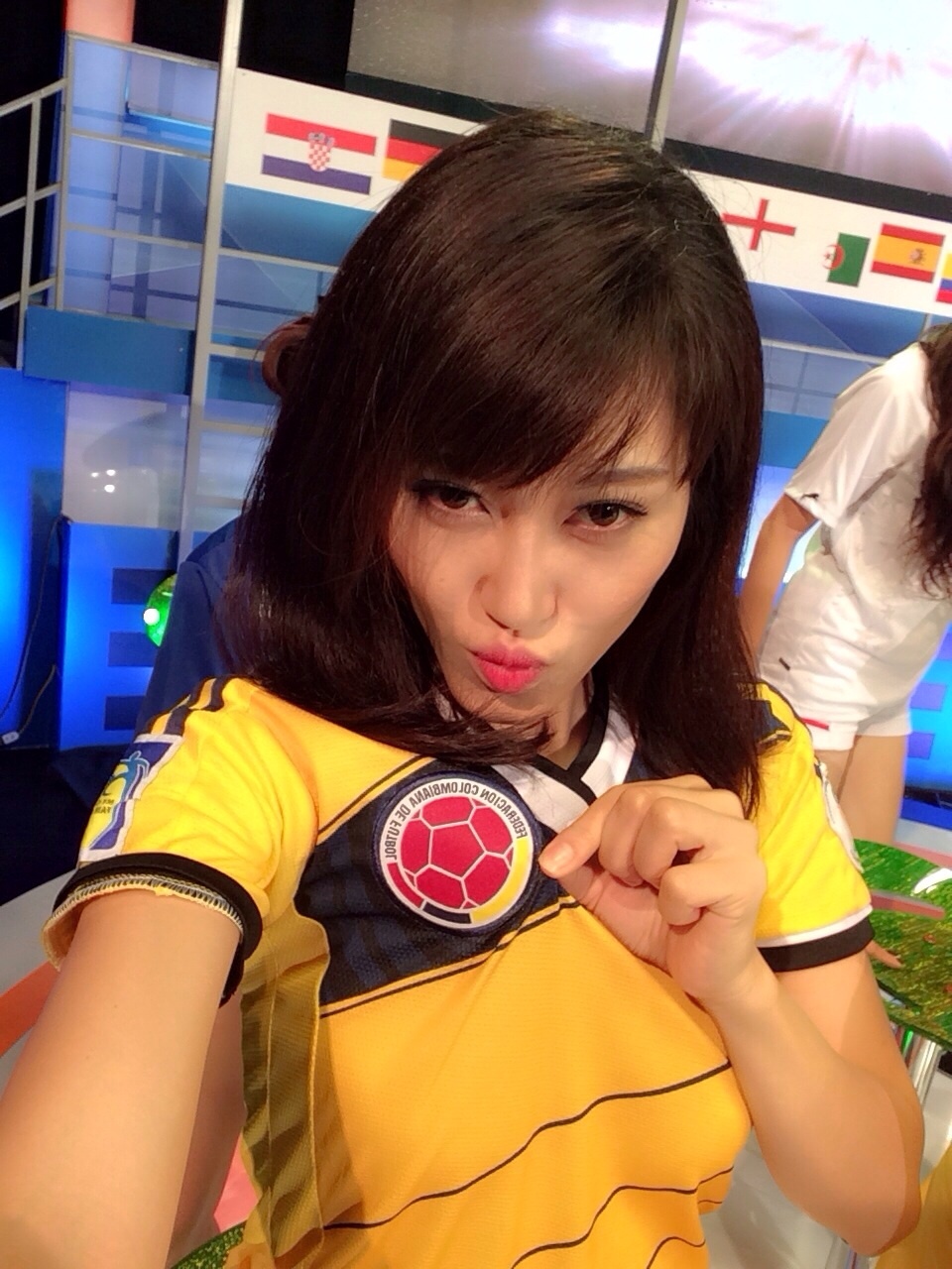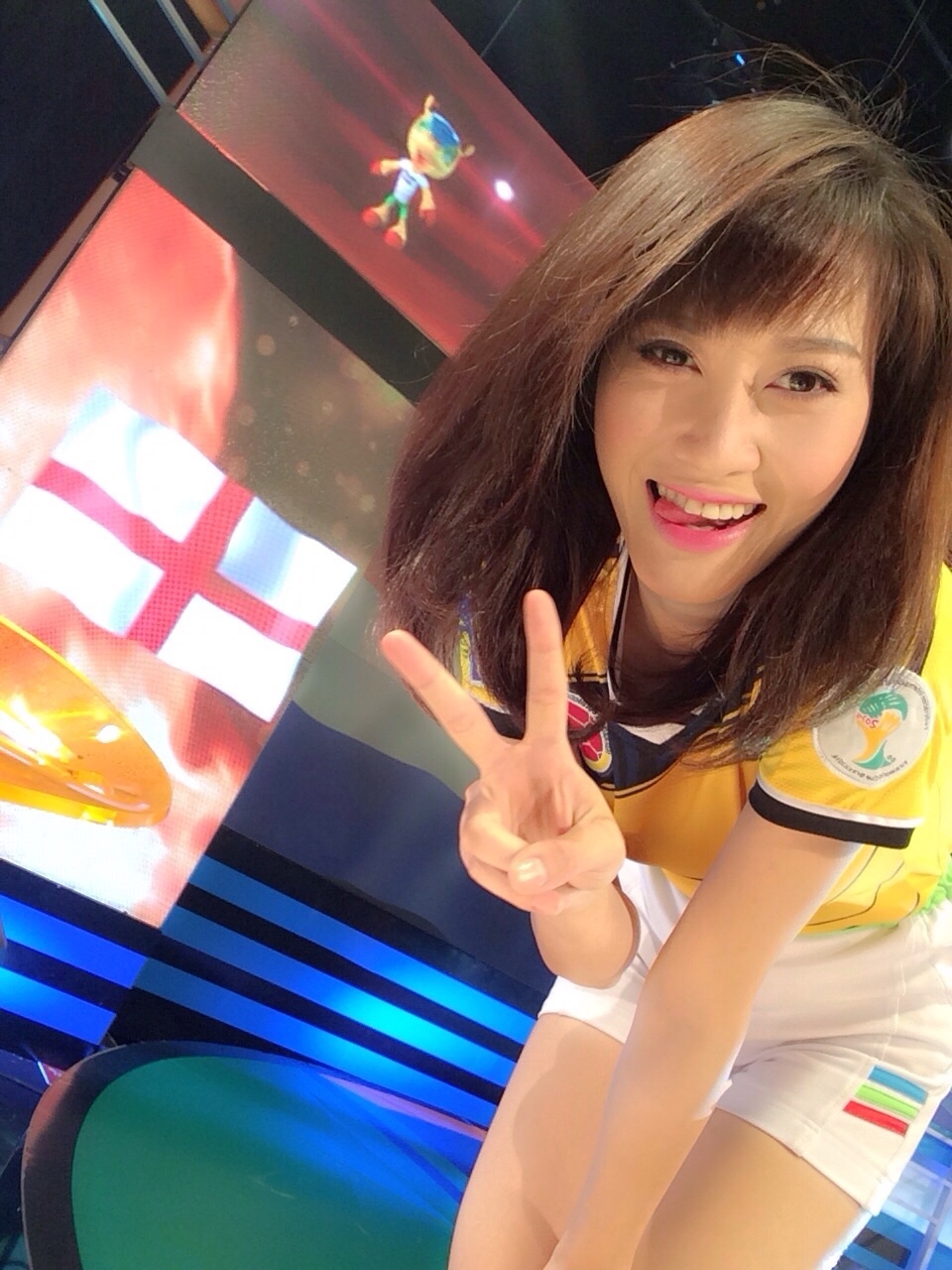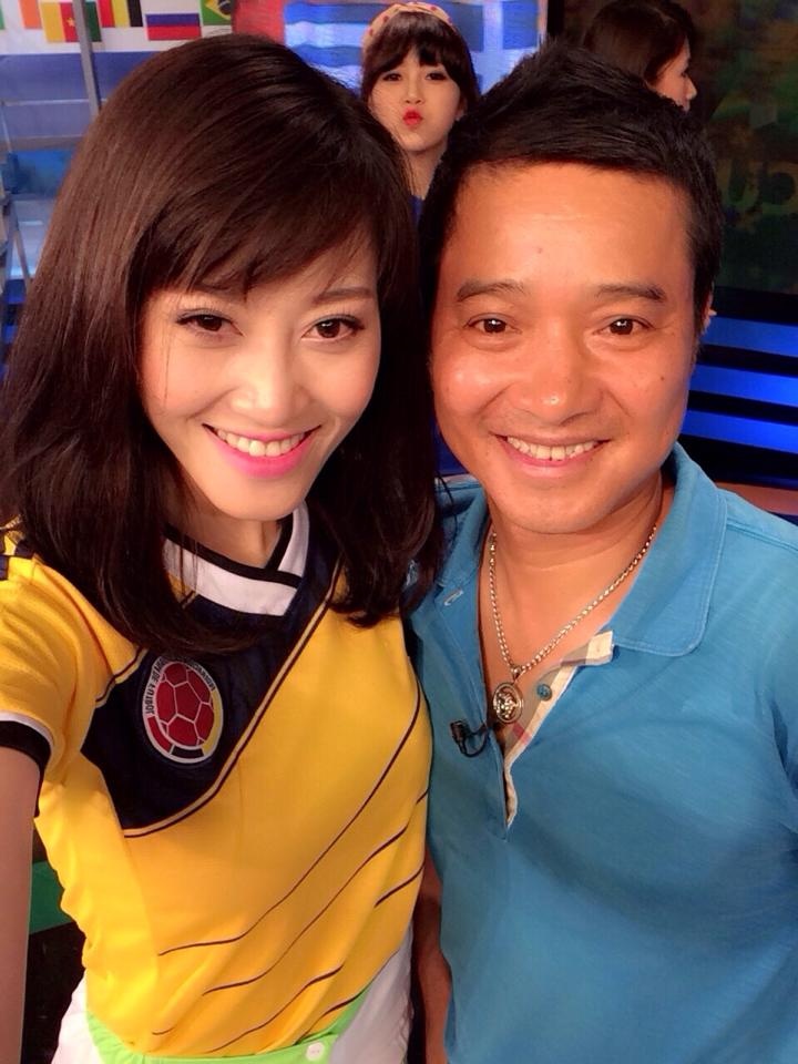 | Jenny Linh được mời tham gia một chương trình bình luận và dự đoán kết quả các trận đấu của ĐT Colombia trên truyền hình cùng với danh thủ Hồng Sơn. |