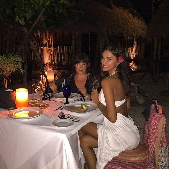 | Sau khi chia tay Ronaldo, Irina dường như không còn vương vấn ngôi sao Real. Cô đang tận hưởng cuộc sống độc thân vui vẻ, tự do. Trong ảnh, người đẹp đang khoe lưng trần nuột nà khi đi ăn tối cùng mẹ tại bãi biển Mexico. |