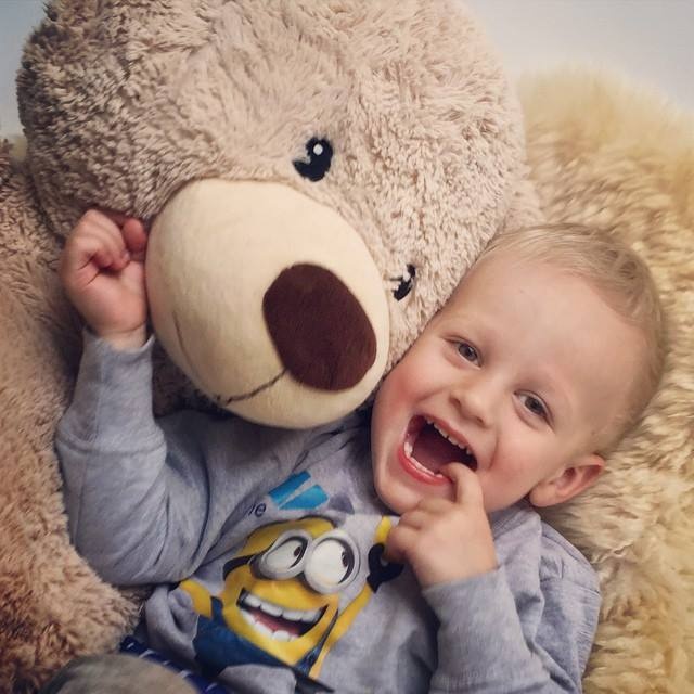 | Bà xã của Lindegaard (Manchester United) khoe ảnh quý tử Julian đáng yêu bên chú gấu bông khổng lồ. |