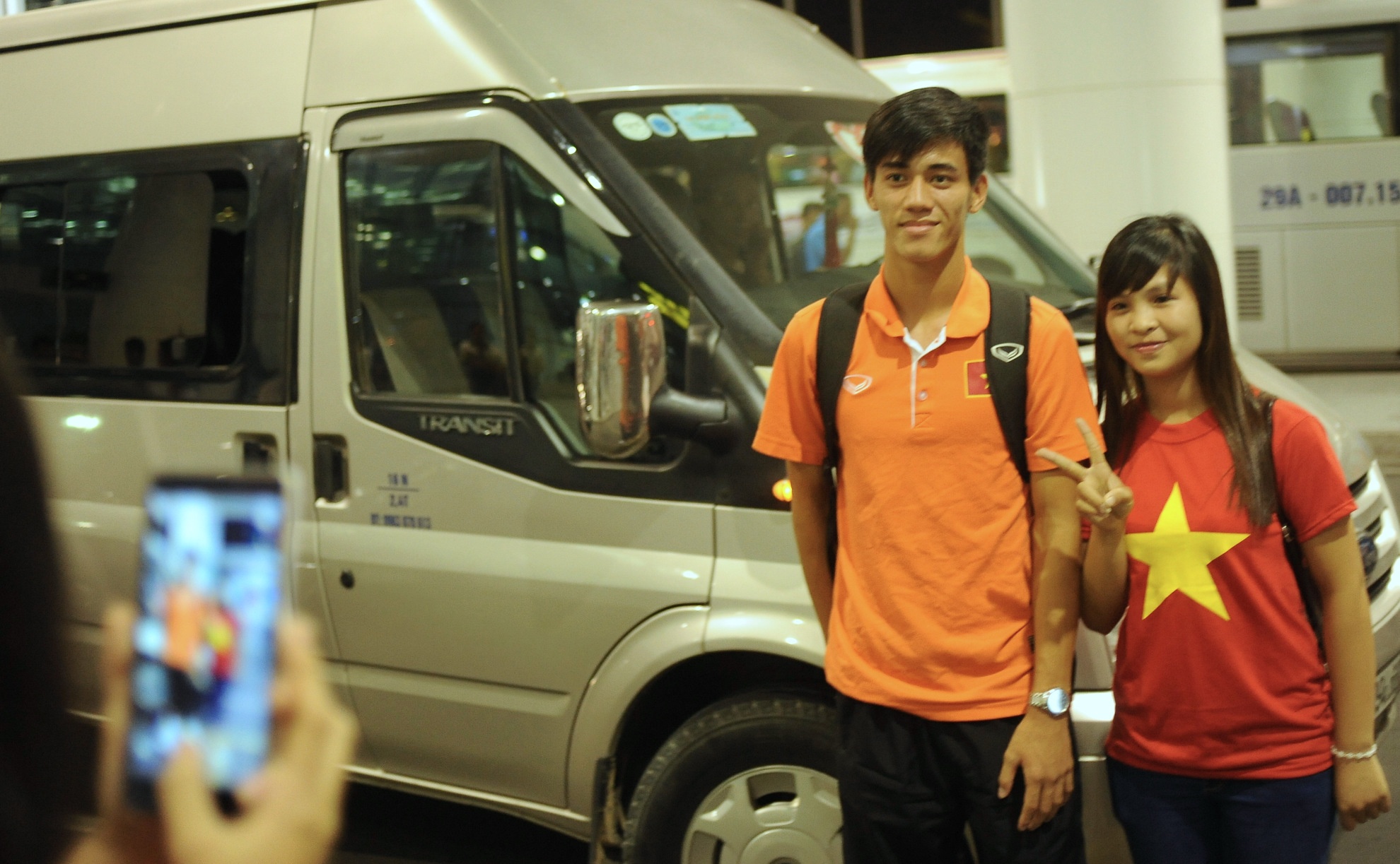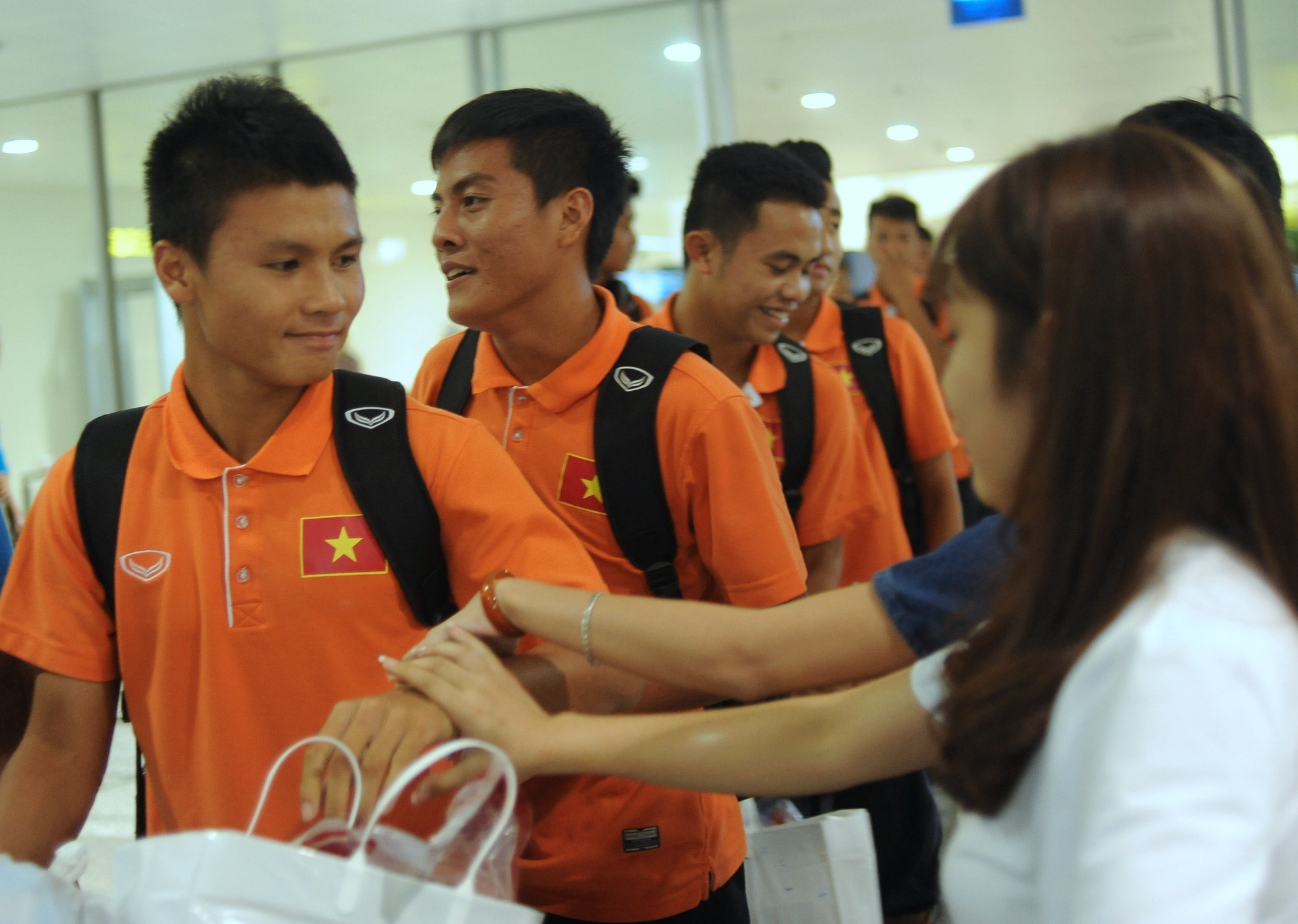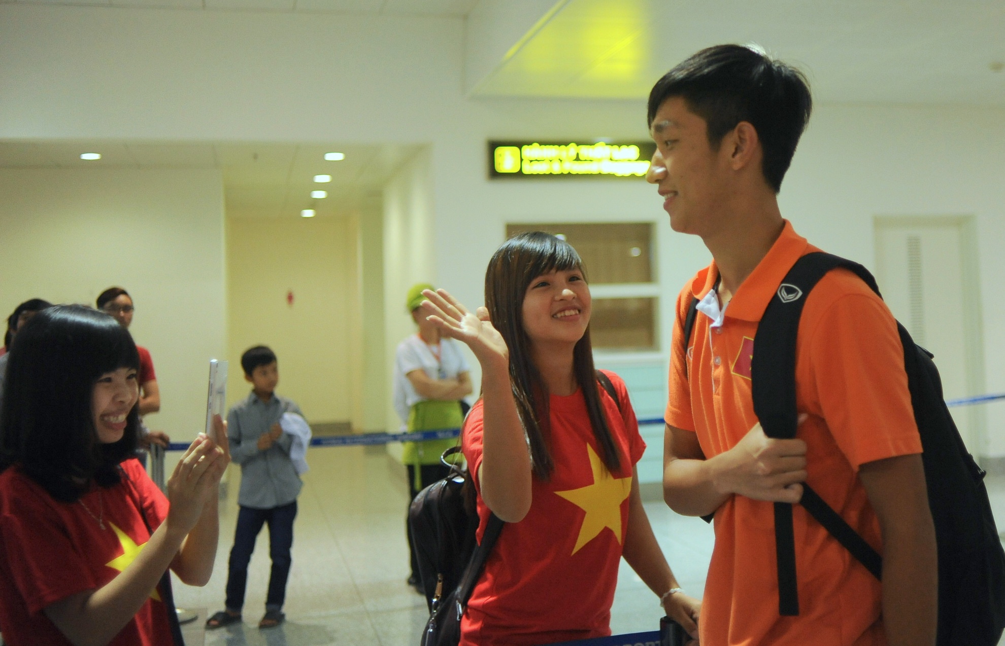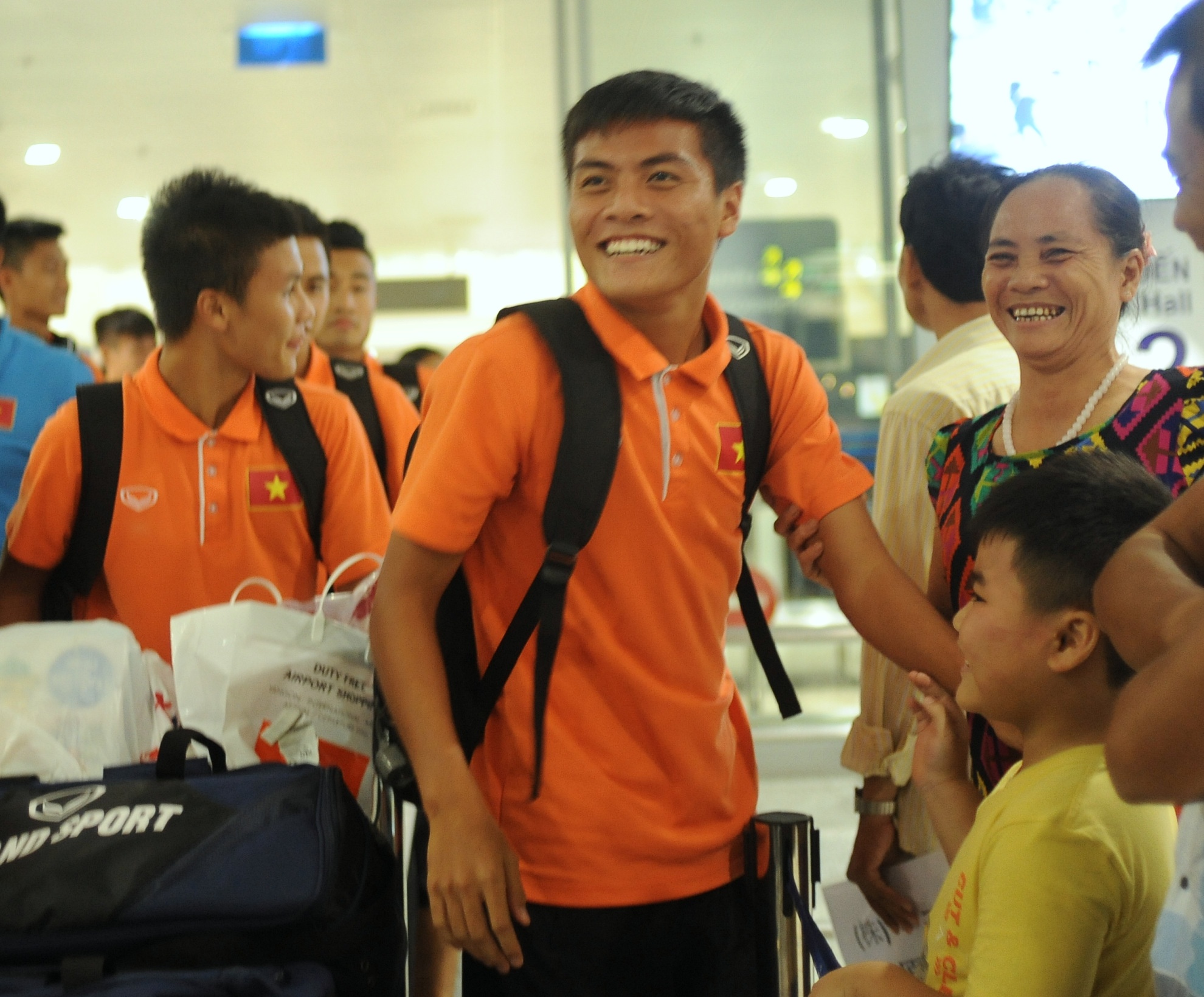 | Đội trưởng Trọng Đại là cầu thủ U19 Việt Nam đầu tiên bước ra từ sảnh quốc tế sân bay Nội Bài (Hà Nội). |