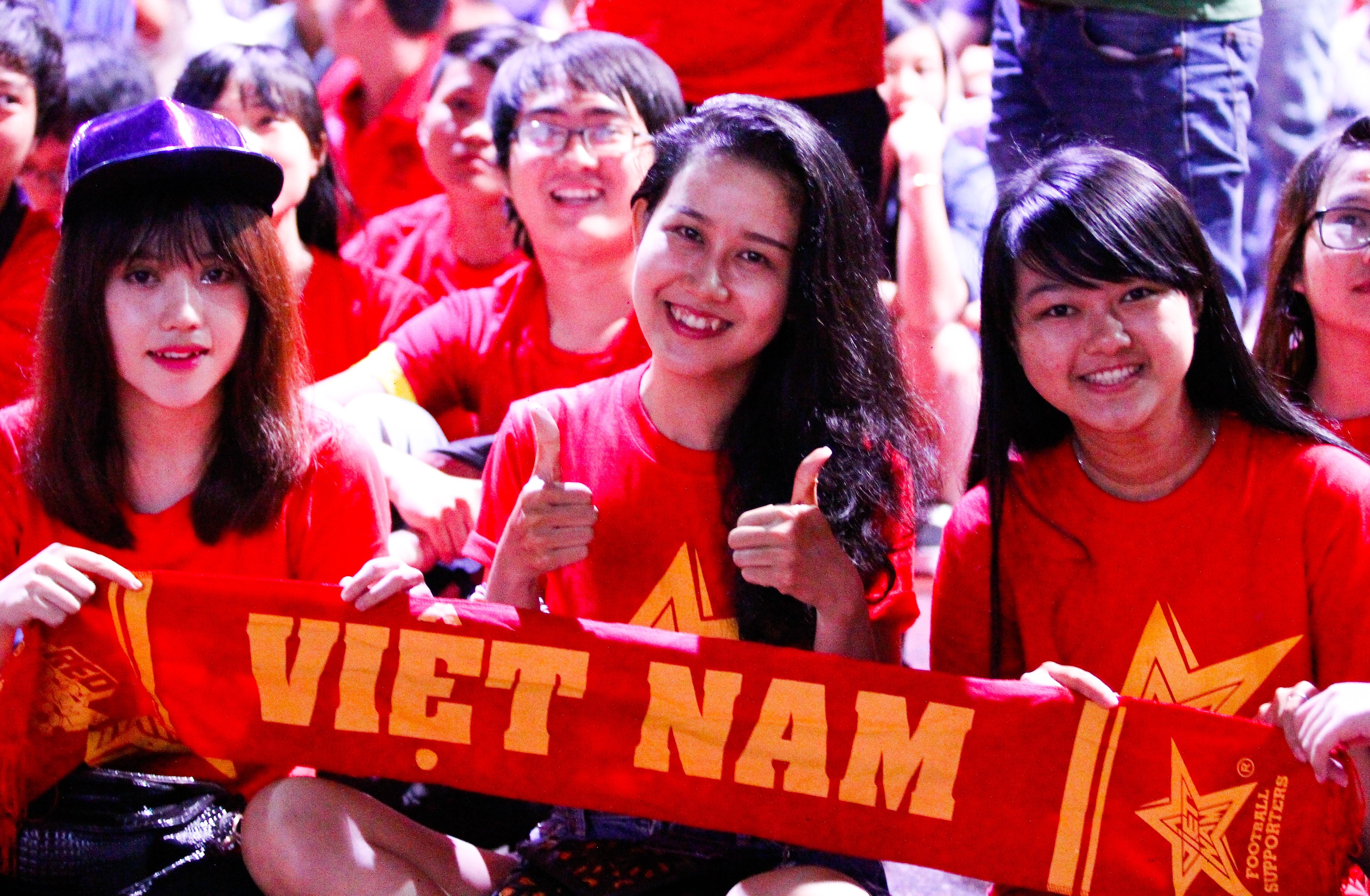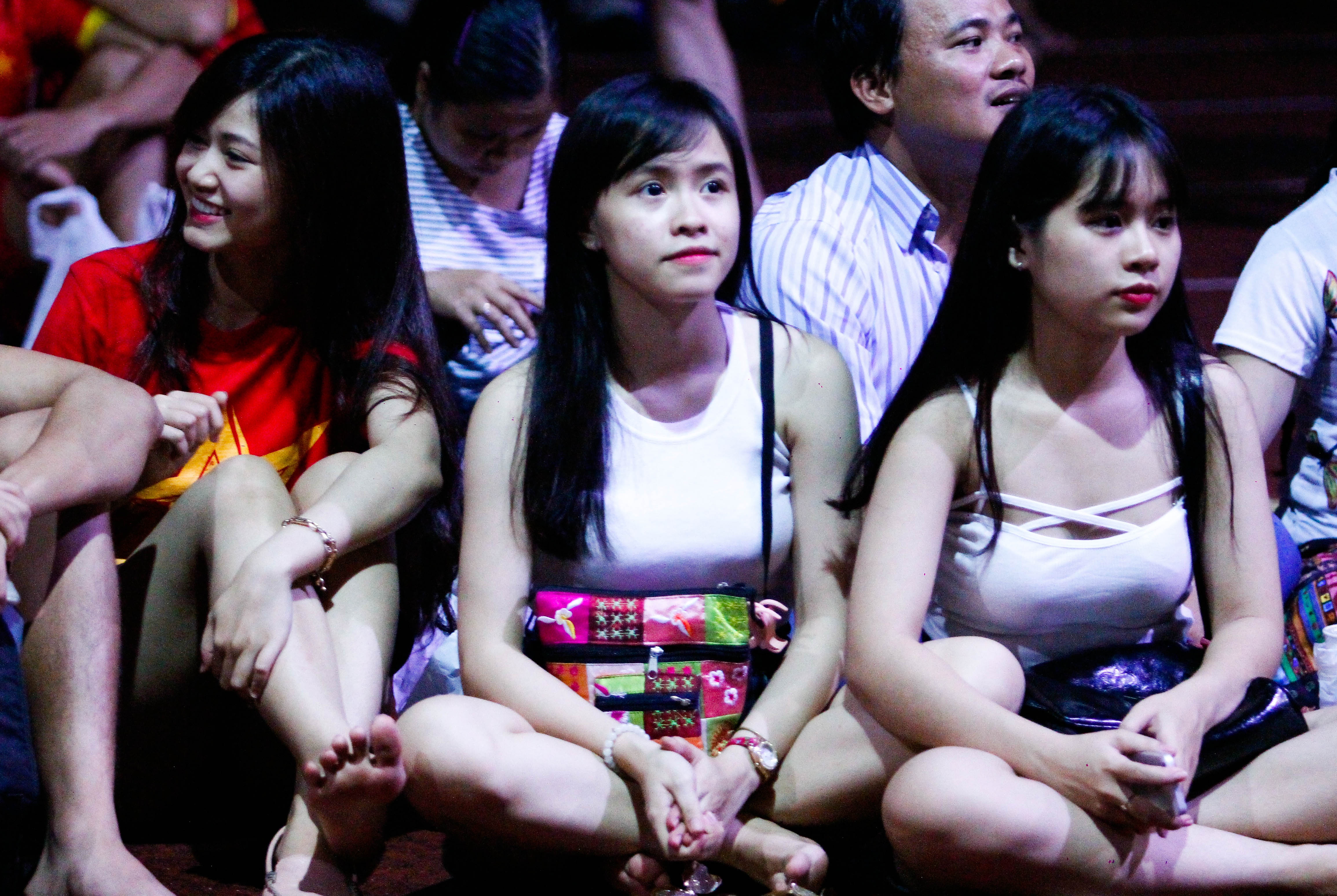 | Nhiều fan nữ xinh đẹp cùng tụ hội để theo dõi các cầu thủ U19VN thi đấu trận chung kết.