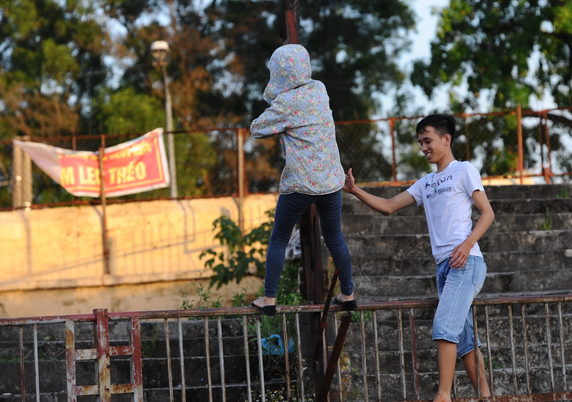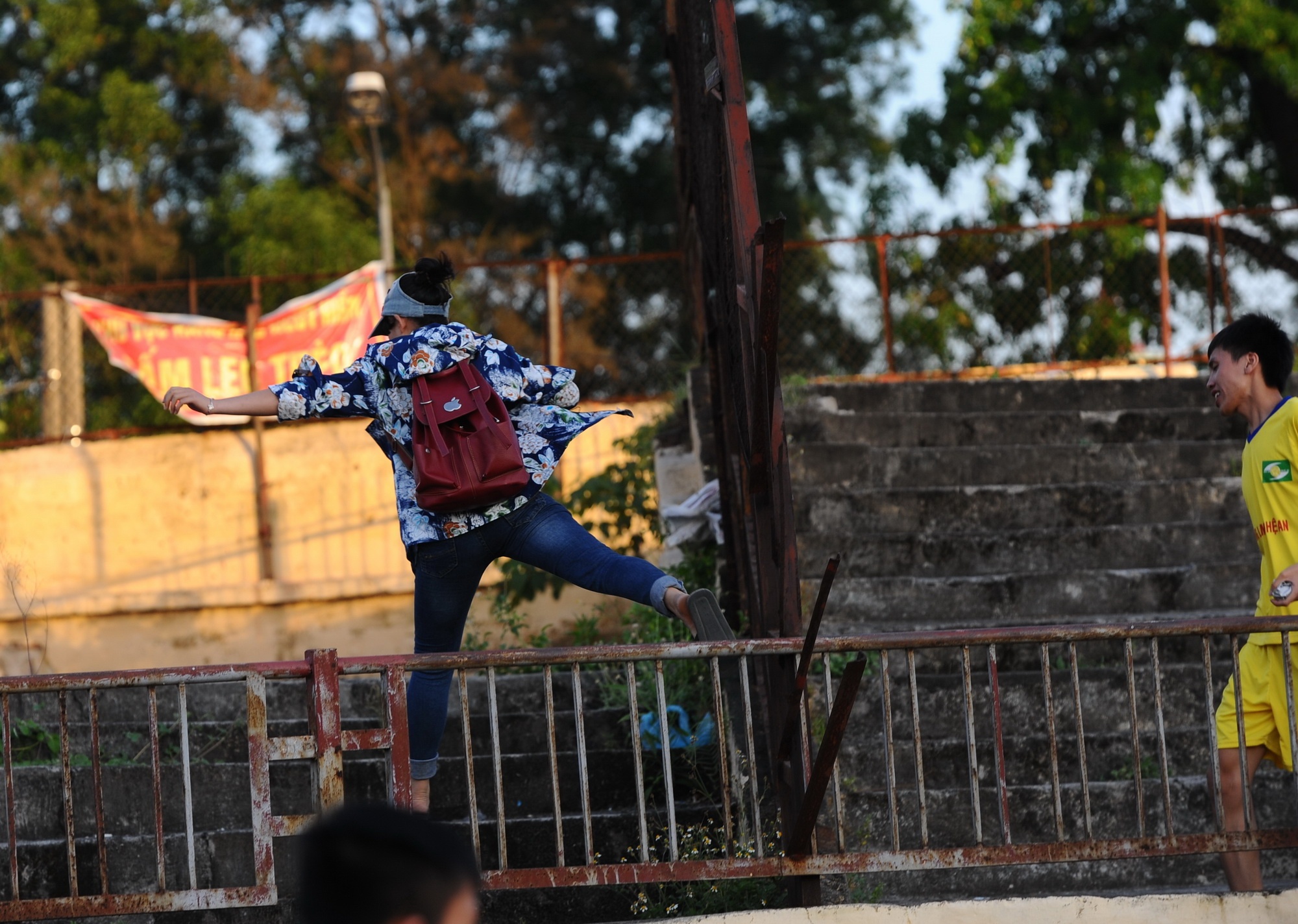 | Dù có biển "cấm leo trèo", nhưng nhiều fan nữ SLNA vẫn bất chấp nguy hiểm để vào sân cổ vũ đội nhà thi đấu. |