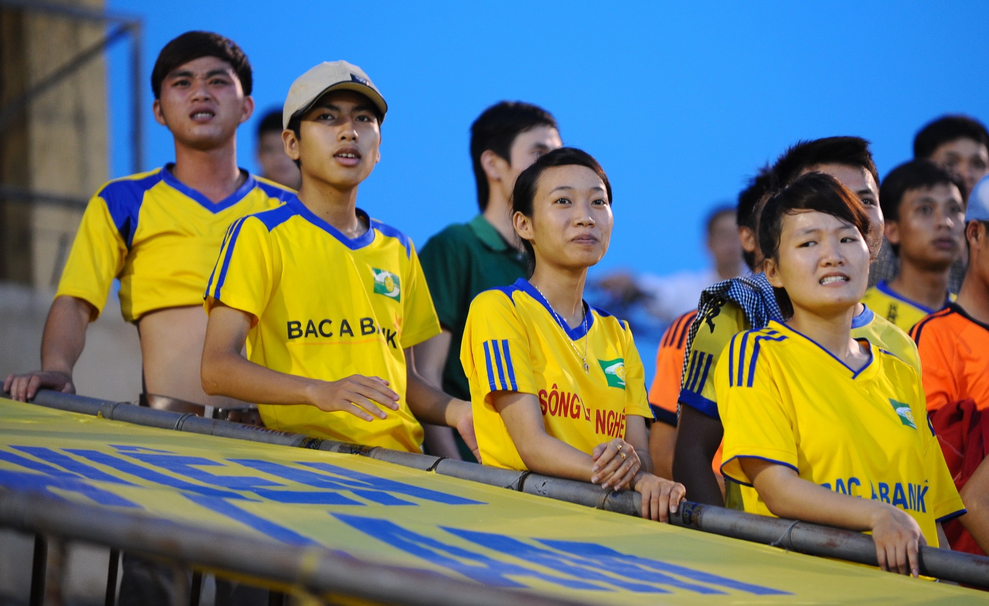 | CĐV SLNA tiếc nuối khi đội nhà tạo không tận dụng được cơ hội ở cuối trận nên để thua cuộc 0-2 trước Bình Dương. |