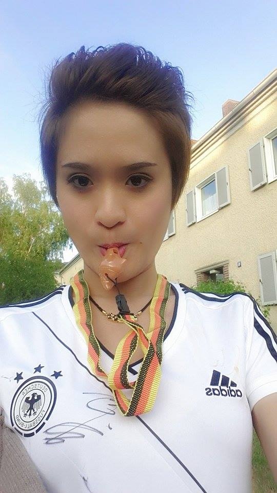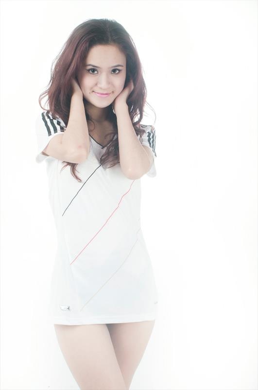 Ngoài tennis, đua xe công thức 1, niềm đam mê lớn của Yến Nhi là bóng đá, và cô dành tình yêu tuyệt đối cho Die Mannschatf. Trong ảnh, Nhi đang mặc chiếc áo của ĐT với chữ ký của Poldolski. Chữ ký này cô xin được trong lần tuyển thủ Đức tới Việt Nam cùng đội Arsenal.