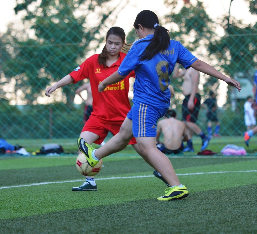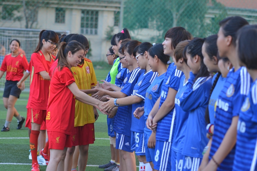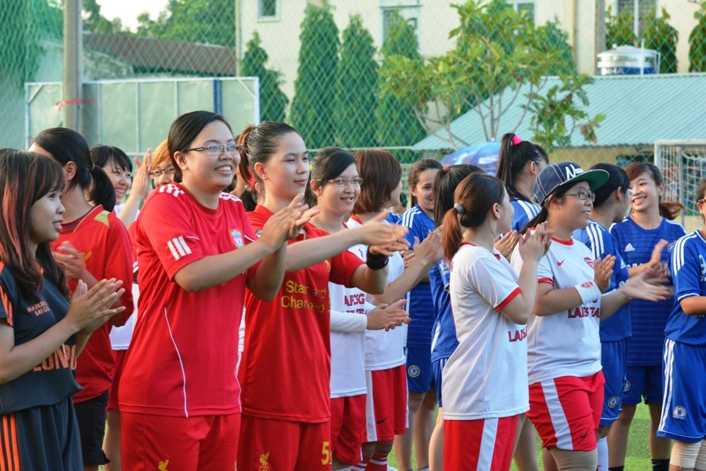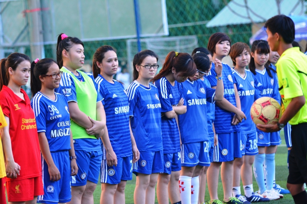 | Ở lượt đấu đầu tiên diễn ra hôm qua 18/5, đội nữ Liverpool (LFCSG) gặp đội nữ Chelsea (CFC.HCMC) |