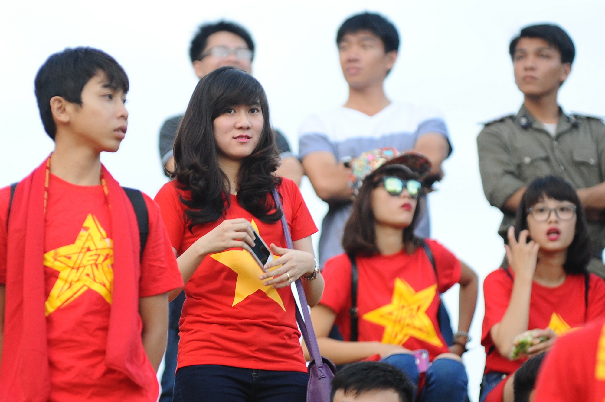 | Fan nữ Trần Thương đang là sinh viên năm 3 ĐH Xã Hội và Nhân Văn TP.HCM cùng một người bạn của mình vượt đường xa có mặt tại SVĐ Cần Thơ để cổ vũ U21 Việt Nam. Thương chia sẻ: "Em tin U21 Việt Nam sẽ giành chiến thắng, các bạn U19 lúc này cần một trận thua để trở về mặt đất". |