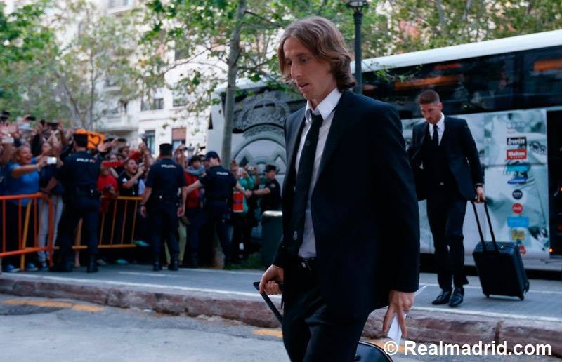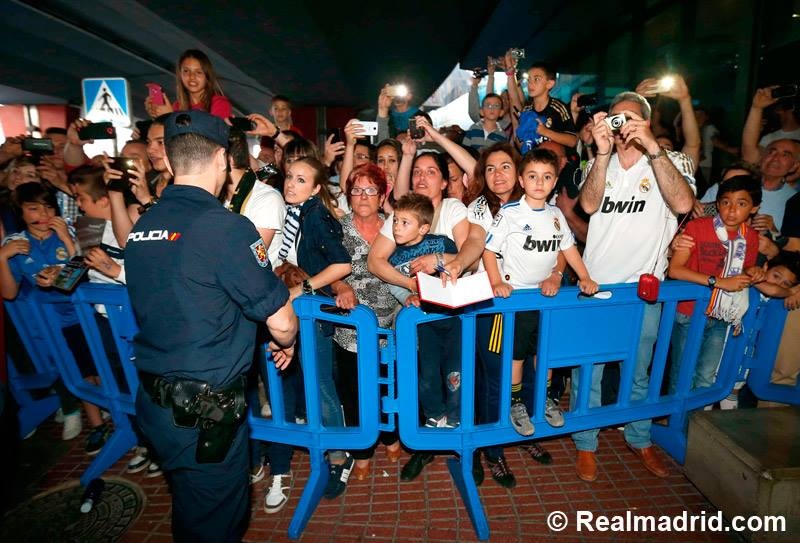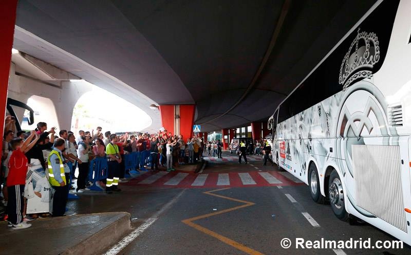 | Hàng trăm CĐV đã có mặt tại Valencia để đón thầy trò HLV Carlo Ancelotti. |