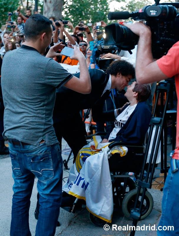 | Trung vệ Pepe bày tỏ tình cảm với một CĐV khuyết tật của Real. |