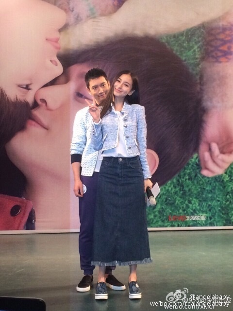| Huỳnh Hiểu Minh và Angelababy nhắng nhít trên sân khấu tại trường Đại học Trùng Khánh. Ở bên nhau từ năm 2010 nhưng dịp lễ tình nhân năm ngoái - 14/2/2014 - cặp đôi mới chính thức công khai chuyện tình cảm. |