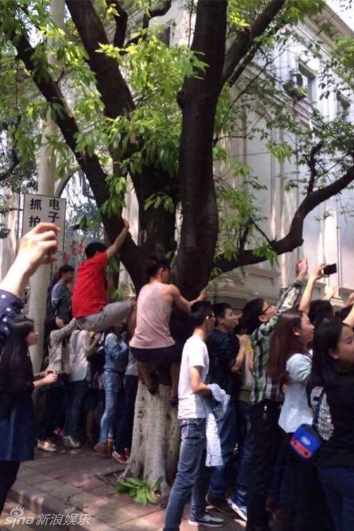 | Không ít anh chàng còn trèo cây, leo lên mái nhà để nhìn cho rõ. |