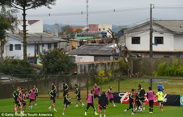 | Nhiều người sẵn sàng trèo tường để xem những cầu thủ thần tượng tập luyện. |