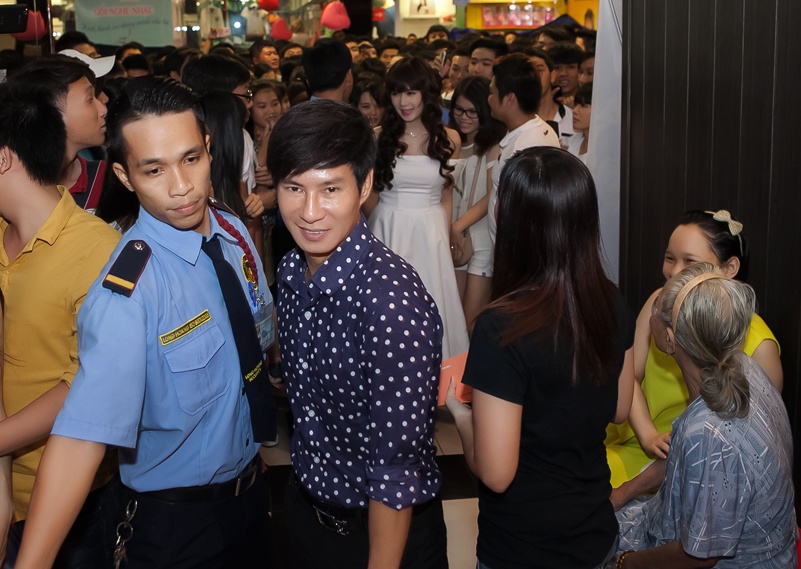 | Đoàn phim Lật mặt gồm vợ chồng Lý Hải – Minh Hà, Võ Thành Tâm, Đinh Ngọc Hà, Quách Ngọc Tuyên... có buổi giao lưu, xem phim cùng fan tại TP HCM. Khi đoàn bắt đầu phát vé là lúc người hâm mộ ùa lên vây kín lấy thần tượng. Sau vài lời trấn an của Lý Hải, các fan đồng tình xếp hàng trật tự để nhận vé. Nhiều người đến sau không thể xem được phim dù nam ca sĩ đã bao trọn hai phòng chiếu. |