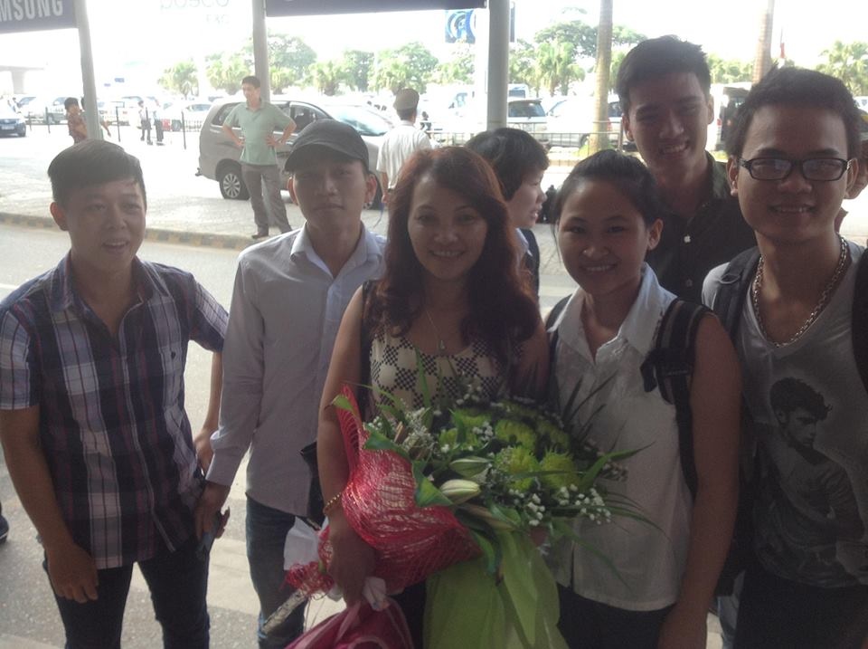 Các fan đã thuê hẳn một chiếc ô tô lớn để ra sân bay đón Phương Mỹ Chi. Chưa hề gặp nhau nhưng tất cả đều ôm chầm lấy nhau thật thân thiết.