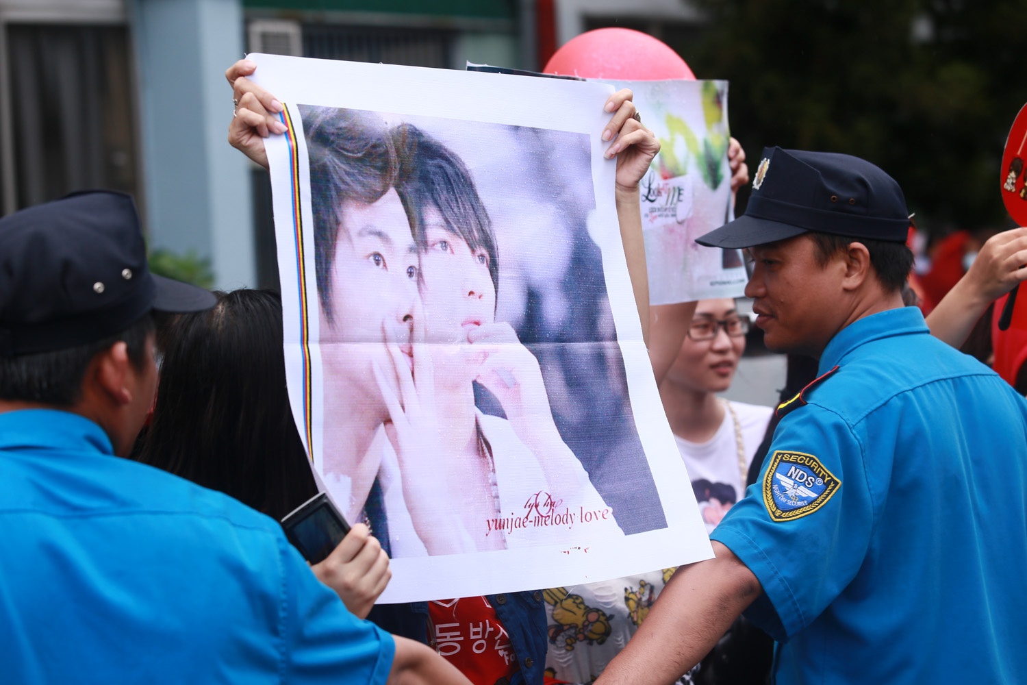 | Fan nước ngoài cũng có mặt trong hàng ngũ những người chờ đón JYJ. |