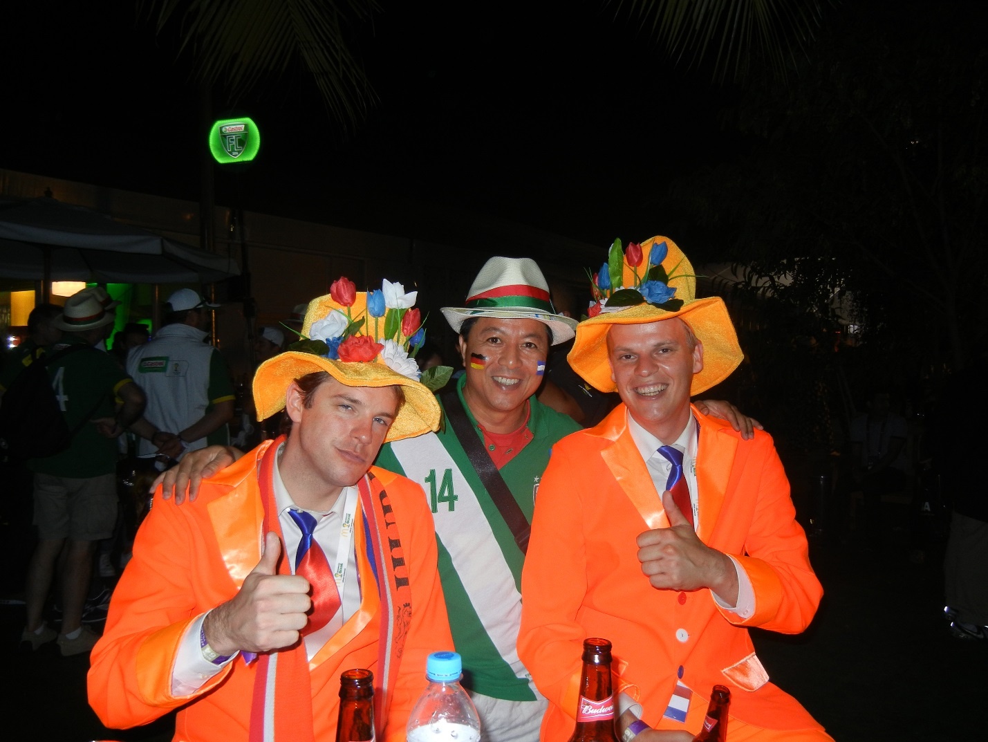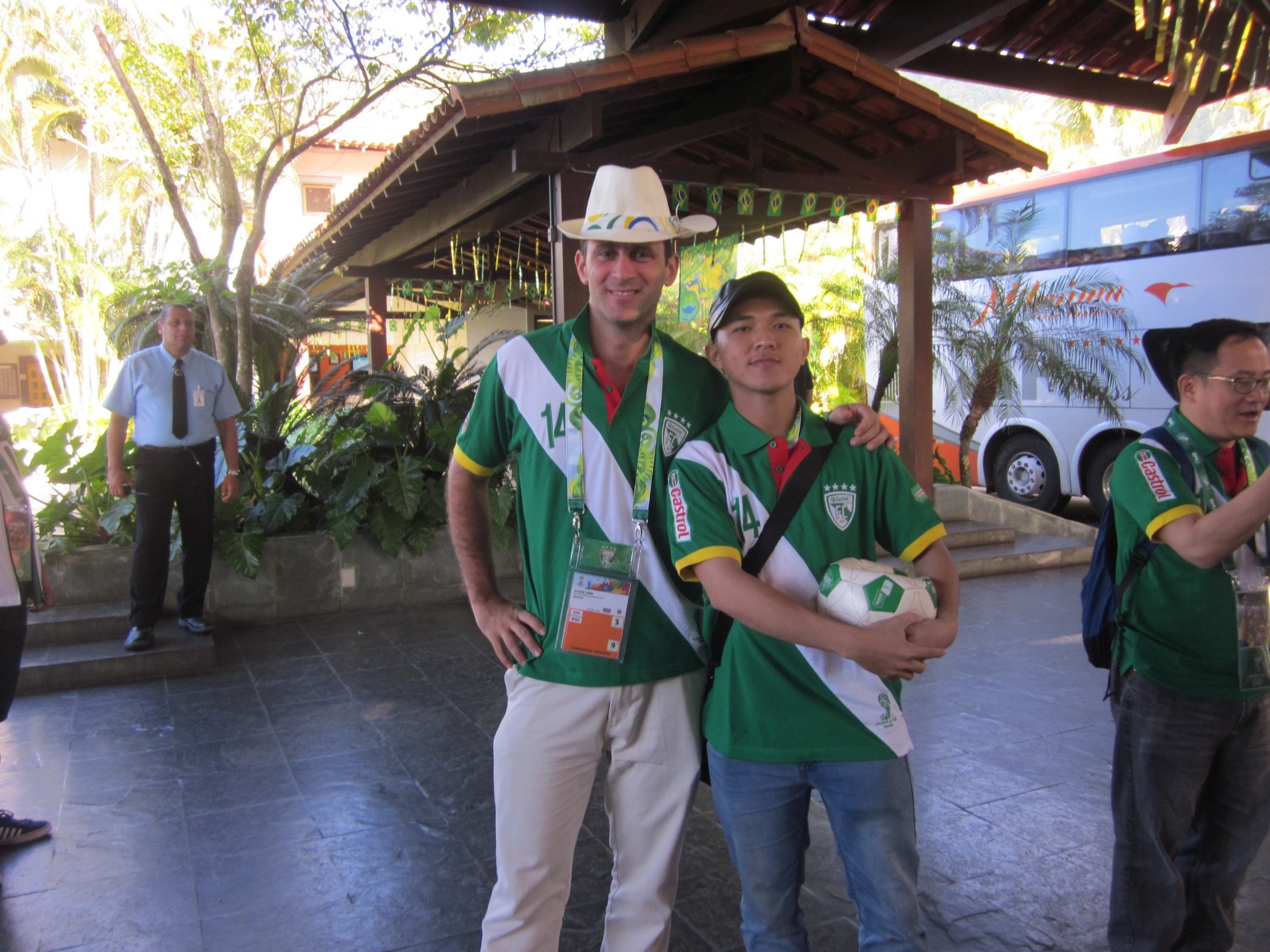 | Anh Diệp Huỳnh Lê (bên phải) xem chung kết World Cup 2014 tại Brasil. |