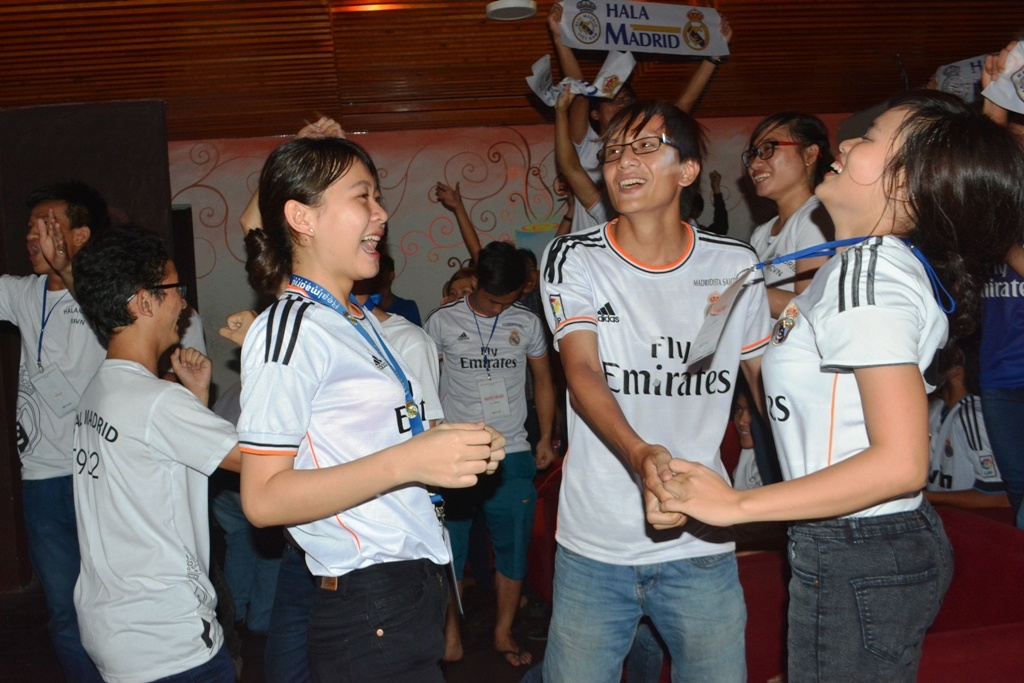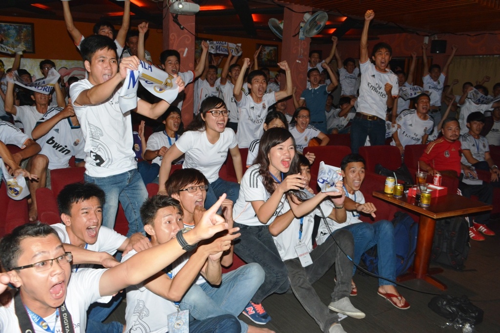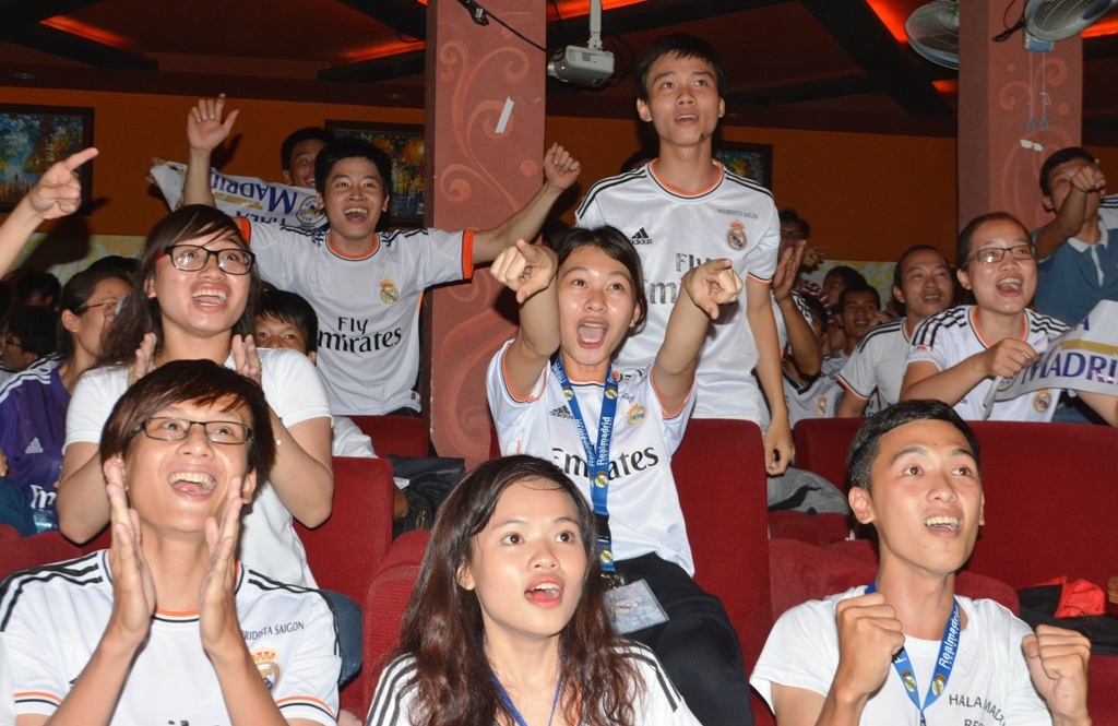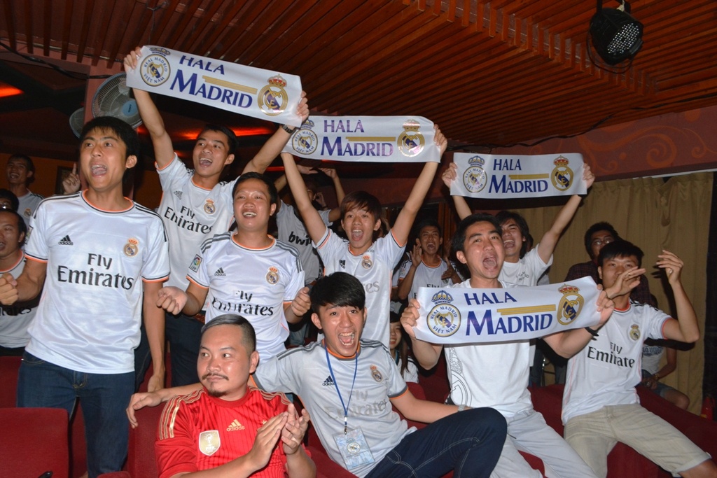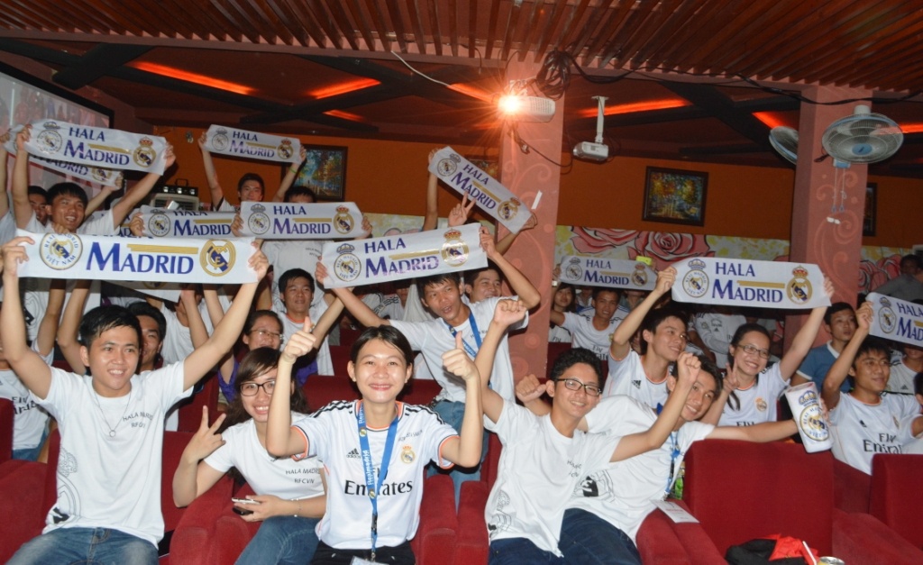| Tại nước Đức, Real của Ancelotti thi đấu thăng hoa như những "vũ công" trong bộ cánh trắng thì tại Việt Nam, fan của họ cũng say theo chiến thắng. |