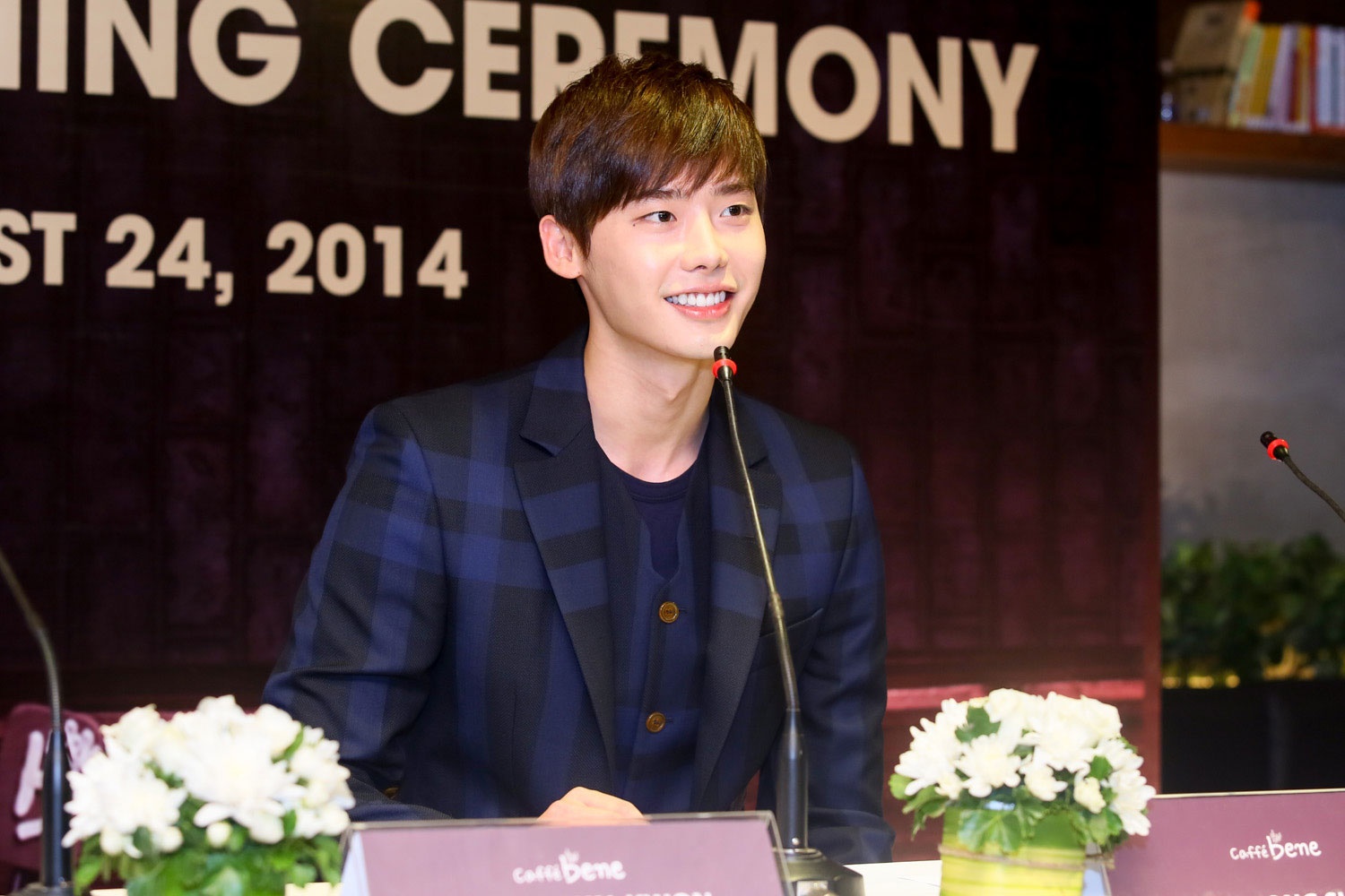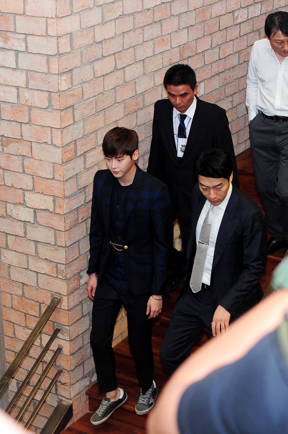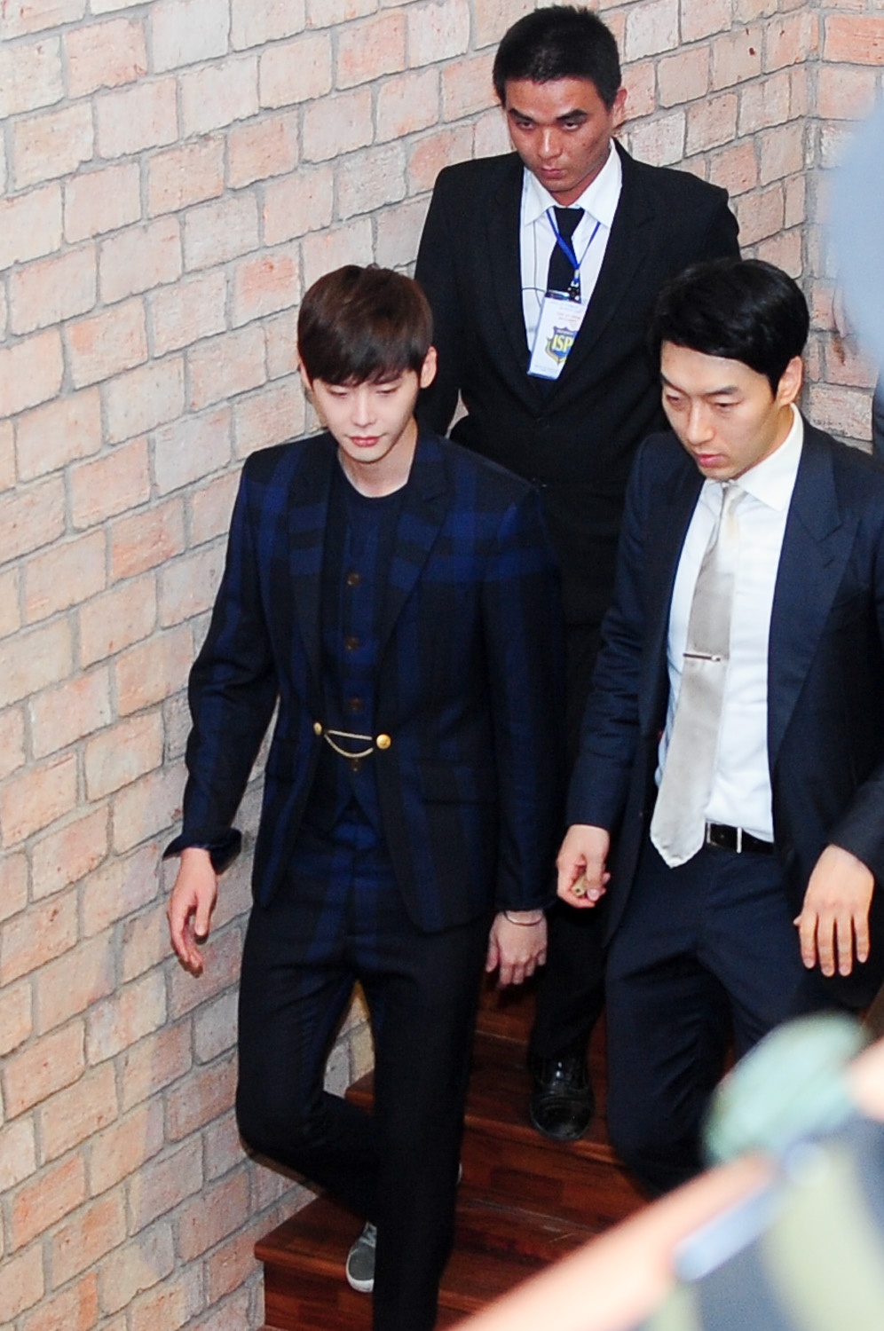 | Chiều 24/8, Lee Jong Suk xuất hiện bảnh bao trong bộ vest lịch lãm tại buổi họp báo khai trương một thương hiệu cà phê trong vai trò gương mặt đại diện, tại TP.HCM. Vừa bước xuống xe, mỹ nam phim I hear your voice được các vệ sĩ đưa vào phòng họp báo từ phía cổng sau để tránh sự hâm mộ, cuồng nhiệt từ rừng fan. |