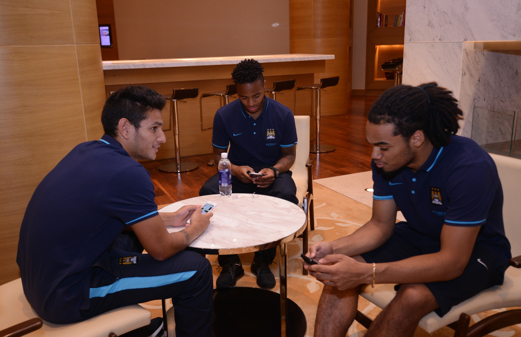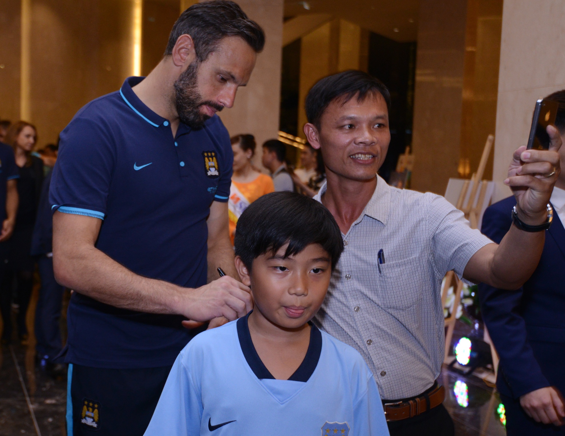 | Tối 26/7, các cầu thủ Manchester City gồm Sterling và hai cầu thủ trẻ có buổi giao lưu cùng người hâm mộ tại một khách sạn ở Hà Nội. |