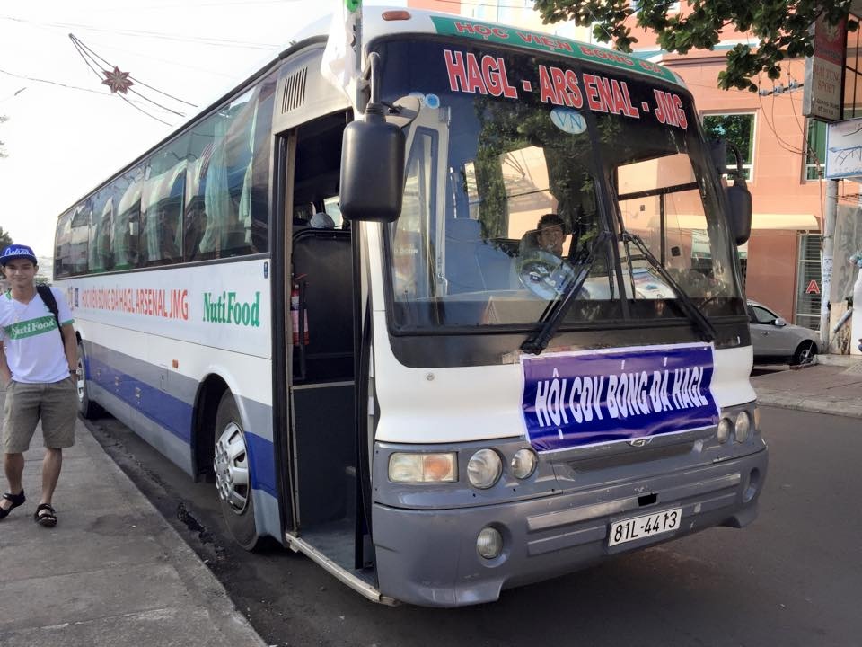 7h ngày 24/4, 50 người hâm mộ phố núi đã lên xe ôtô, bắt đầu hành trình hơn 1.200 km ra Hà Nội để cổ vũ trận đấu Hà Nội T&T - HAGL ở vòng 11 V.League 2015.