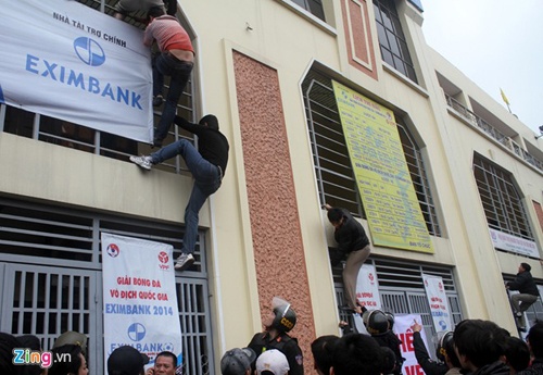 | Nhiều CĐV liều mình trèo tường cao vào xem. |