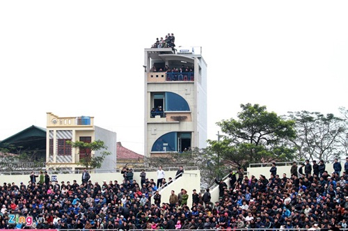 | Trong trận đấu với Hải Phòng cuối tuần trước, nhiều nhà quanh sân còn bán vé ngồi tầng cao xem với giá 20.000 đồng/người. |