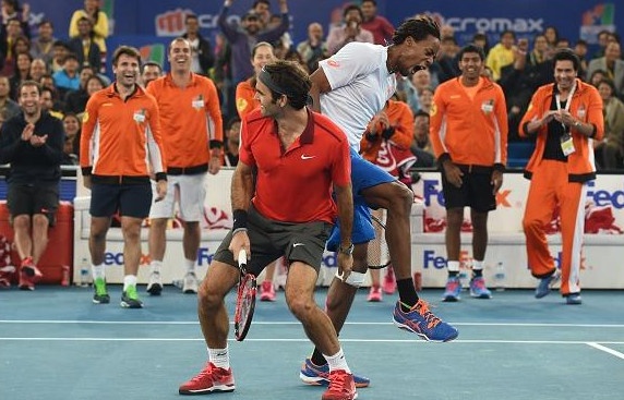 Roger Federer khoác áo Indian Aces và trong trận đấu mới đây cho CLB của Ấn Độ, huyền thoại người Thụy Sỹ xuất sắc đánh bại Tomas Berdych (Singapore Slammers) với tỷ số 6-4. Vui mừng với chiến thắng, "tàu tốc hành" đã bất ngờ thực hiện điệu nhảy khá hài hước cùng đồng đội Gael Monfils trước sự ngạc nhiên và thích thú của hàng chục nghìn khán giả có mặt tại SVĐ trong nhà Indira Gandhi (Delhi).