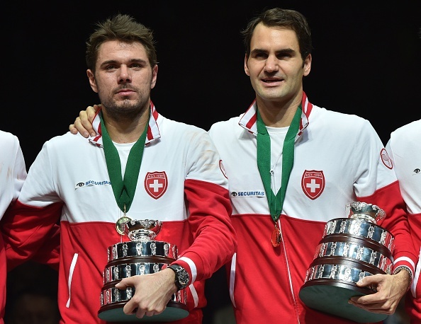 | Đôi bạn thân, Federer và Wawrinka kết thúc năm 2014 trong niềm vui chiến thắng. |