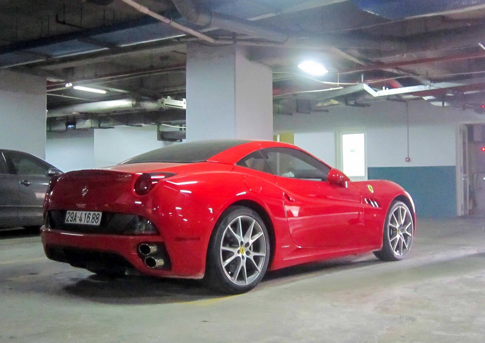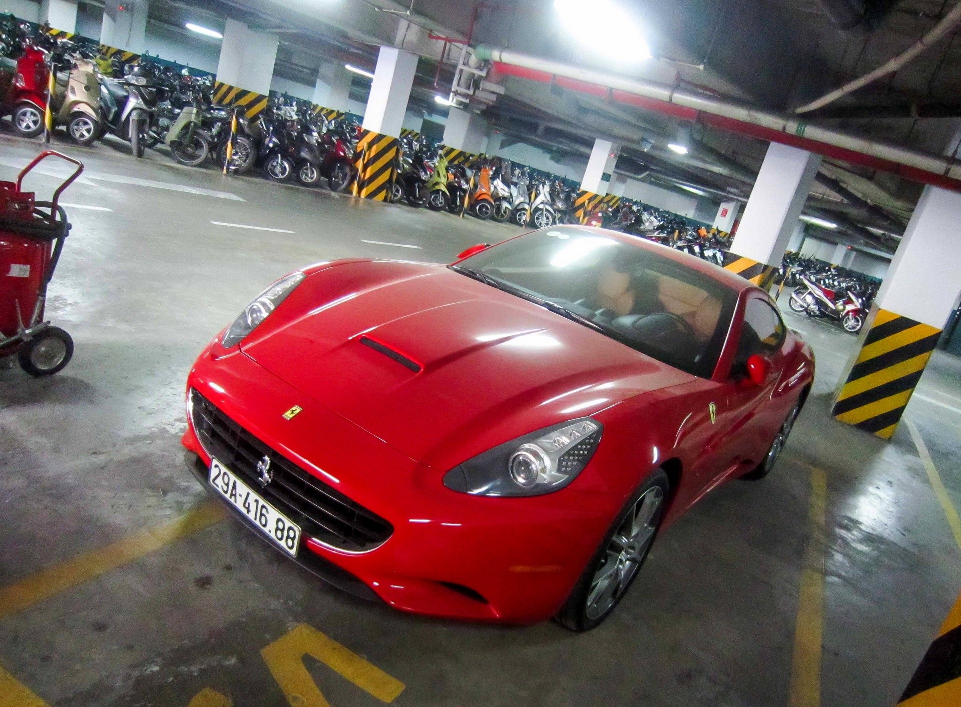 | Ferrari California là mẫu xe mui xếp, 2 cửa, 2 + 2 chỗ ngồi của hãng sản xuất siêu xe nước Ý. Đây là mẫu xe được các đại gia Việt ưa chuộng. Nó có mui xếp đặc biệt, chỉ cần vài giây để biến đổi từ một chiếc coupe thành mui trần và ngược lại. |