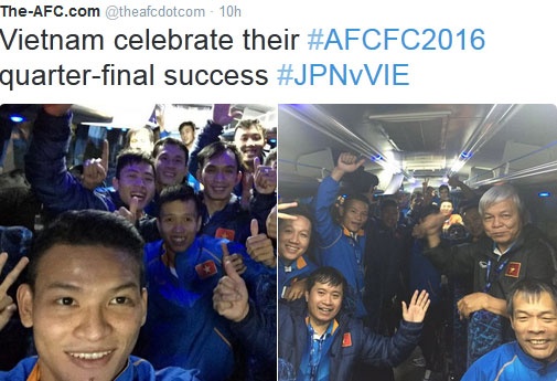 Hình ảnh ĐT Việt Nam ăn mừng vé vào bán kết cũng được đăng trên trang Twitter của AFC. Nhiều độc giả cũng đã gửi lời chúc mừng ĐT futsal Việt Nam. Bạn Emilia Hinkkanen chia sẻ: “Thật kinh ngạc khi Việt Nam đánh bại Nhật Bản trong loạt sút luân lưu ở tứ kết”. Trên trang Twitter, Edward Blackwell nhận xét: “ĐT futsal Việt Nam còn tốt hơn đội tuyển bóng đá quốc gia”.