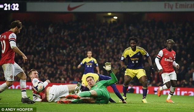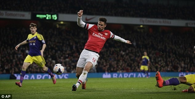 | Trên đà hưng phấn, Pháo thủ tiếp tục có bàn nhân đôi cách biệt ở phút 75 do công của Giroud. |