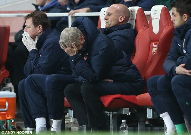 | Nỗi thất vọng của HLV Wenger khi chứng kiến các học trò thi đấu. |