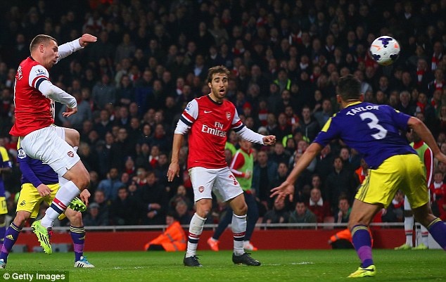 | Mãi tới phút 74, Podolski mới khai thông thế bế tắc cho Arsenal bằng pha dứt điểm dũng mãnh. |