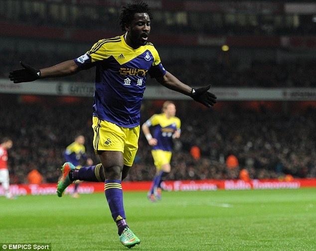 | ...thì phía dưới các hậu vệ đã để Wilfried Bony xuyên thủng mành lưới của Wojciech Szczesny. |