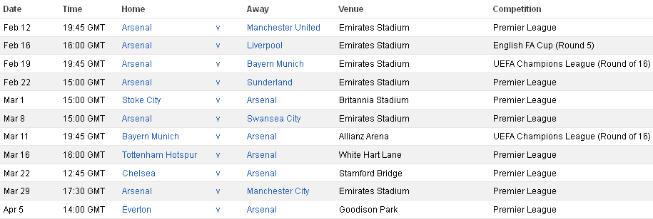 | Lịch thi đấu sắp tới của Arsenal với toàn "hàng khủng". |
