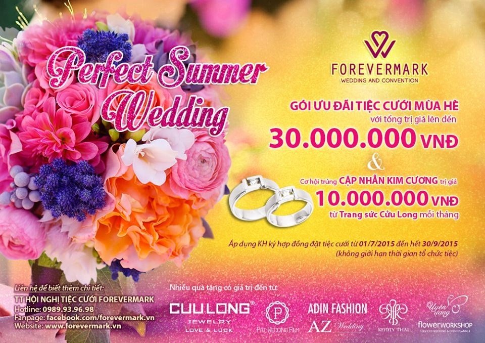 - Thời gian ký hợp đồng đặt tiệc: từ ngày 1/7 đến hết ngày 30/9 (thời gian tổ chức tiệc không giới hạn)