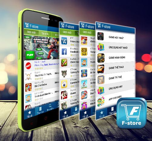 Với F-Store cài sẵn trên máy dành riêng cho các thiết bị di động của FPT, bạn có thể tải về nhiều ứng dụng, game thuần Việt miễn phí mà không cần đăng nhập.