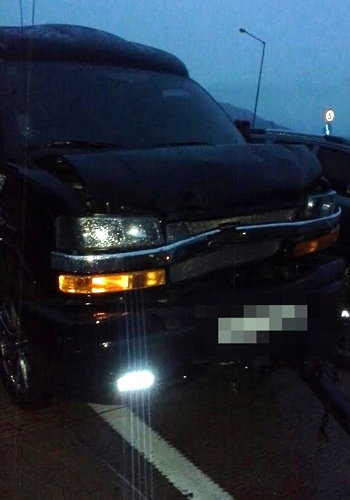 | Hình ảnh chiếc xe của G-Dragon và Tae Yang tại hiện trường vụ tai nạn. |