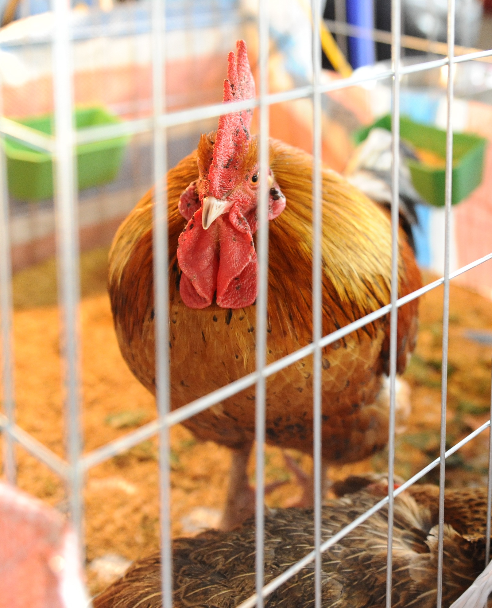 Gà Hồ của thôn Lạc Thổ, thị trấn Hồ, tỉnh Bắc Ninh cũng xuất hiện tại hội chợ xuân lần này. Đây là giống gà lớn. Khi trưởng thành, trọng lượng một con gà mái có thể đạt 3-5 kg, gà trống 4-6 kg.