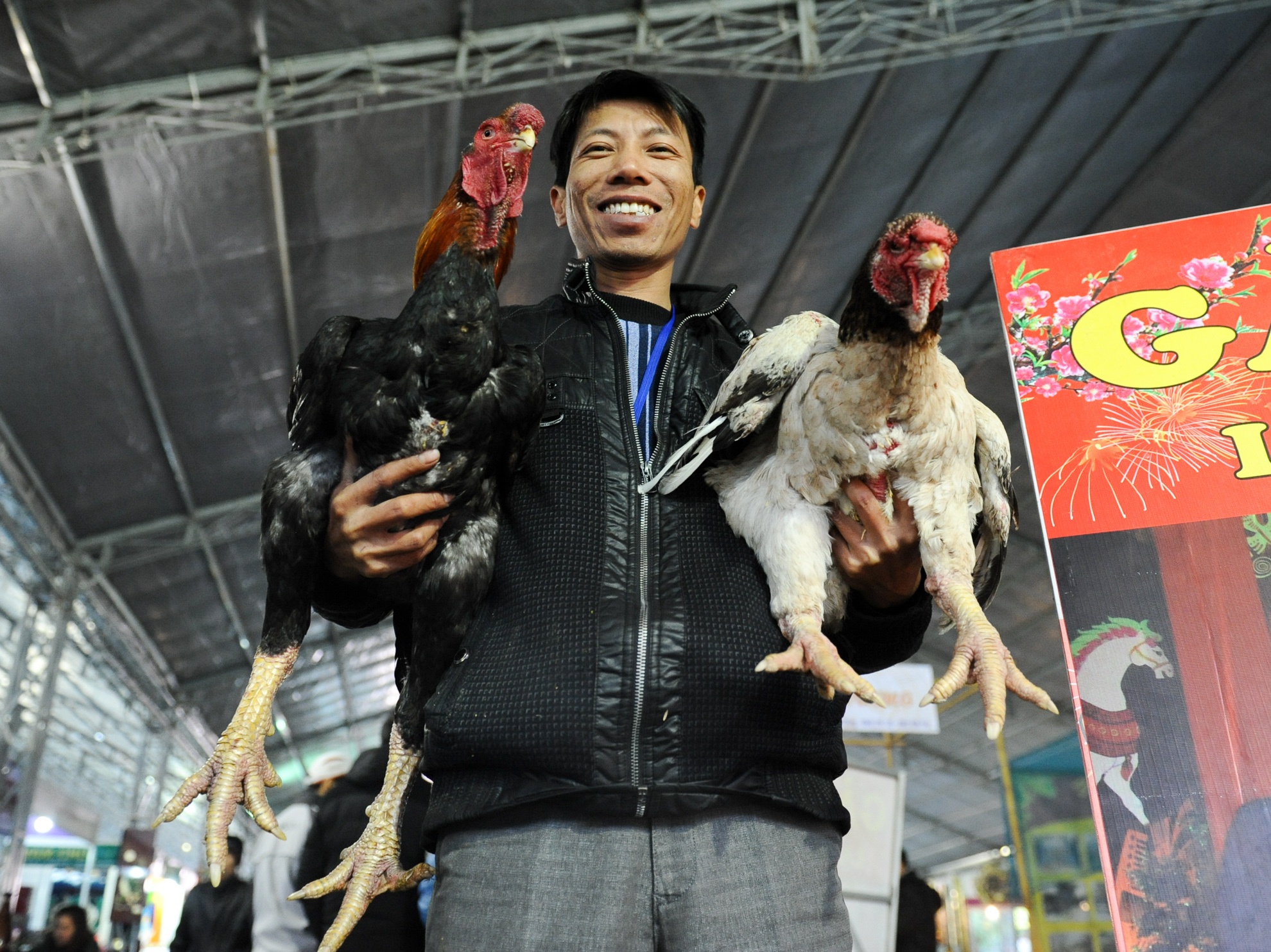 Gà 9 cựa, gà Hồ, Đông Tảo được mang tới Hội chợ xuân 2016 ở Triển lãm Giảng Võ (Hà Nội), bán giá từ vài trăm nghìn tới hàng chục triệu đồng phục vụ thị trường Tết Bính Thân.