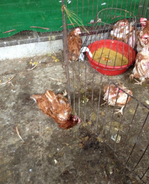 Gà chết, ốm vứt ngay bên lồng gà sống. Những con có biểu hiện ốm bệnh được bán với giá thấp hơn.