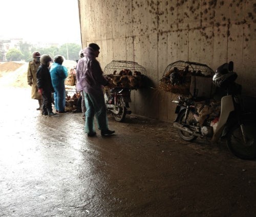 Chứng kiến hoạt đông kinh doanh buôn bán gia cầm tại chợ đầu mối Hà Vỹ khiến chúng tôi không khỏi lo ngại, đặc biệt là khi dịch cúm đang bùng phát trở lại và diễn biến phức tạp. Về chợ Hà Vỹ (xã Lê Lợi, huyện Thường Tín), chợ gia cầm lớn nhất miền Bắc vào một ngày mưa rét, theo quan sát, chợ có vài chục hộ kinh doanh buôn bán gia cầm. Tại cả bốn dãy chợ đều nhầy nhụa nước mưa với chất thải gia cầm rất mất vệ sinh, mùi phân nồng lên khiến người qua lại rùng mình.