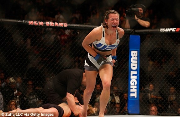 Miesha Tate khiến đối thủ Holly Holm phải chấp nhận chịu thua ở hiệp thứ 5. Ảnh: Daily Mail. |