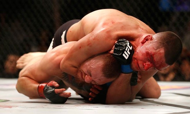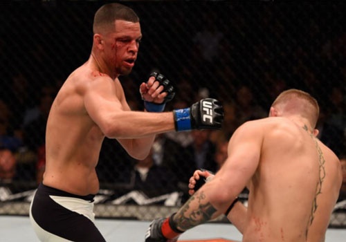Nate Diaz (trái) giành chiến thắng trong trận "gã điên" McGregor ra mắt ở hạng bán trung. Ảnh: ESPN. |