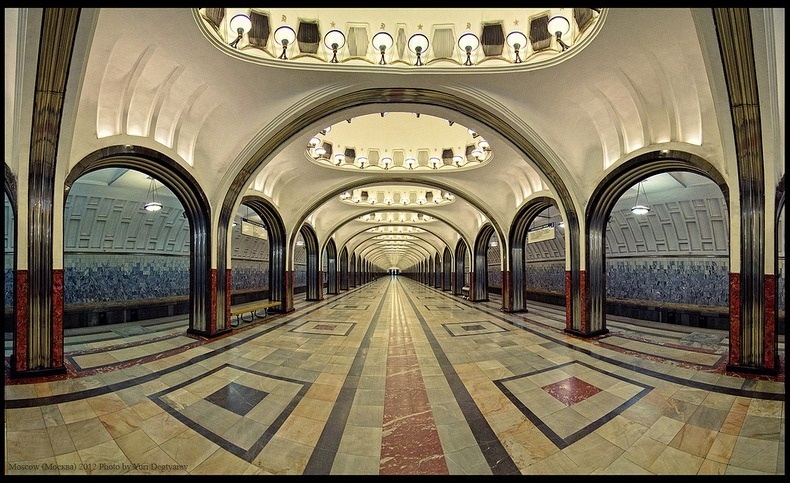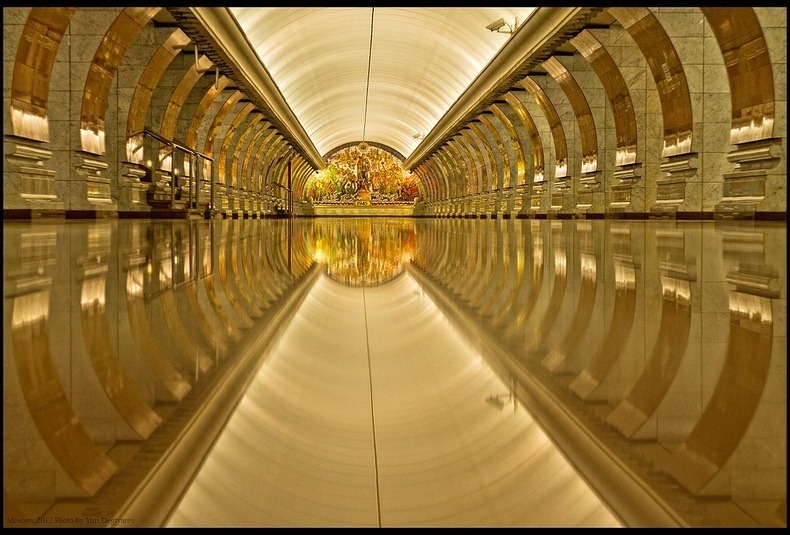 Tàu điện ngầm Moscow là một trong những công trình kiến trúc lộng lẫy nhất của Liên Xô cũ, được ví như những cung điện nguy nga dưới lòng đất.
