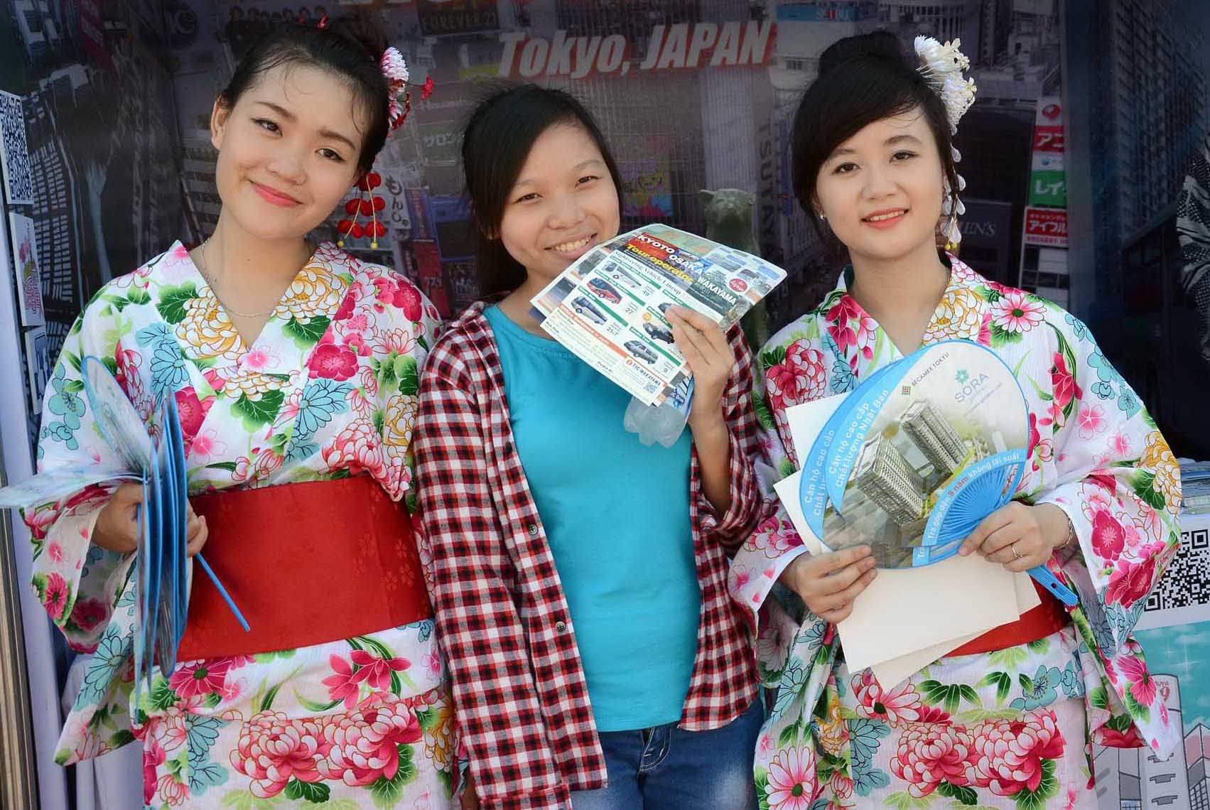 Các cô gái xinh xắn, dễ gần của xứ sở hoa anh đào nổi bật, thu hút mọi ánh nhìn của khách tham gia lễ hội "Tuyệt vời Nhật Bản" tại công viên 23/9, TP.HCM.