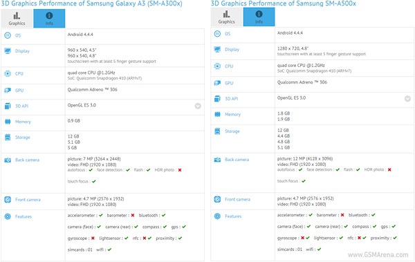 Thông số kỹ thuật của Galaxy A3 và Galaxy A5 cũng vừa xuất hiện trên GFX Benchmark với vài điểm khác biệt so với các tin đồn trước đây.
